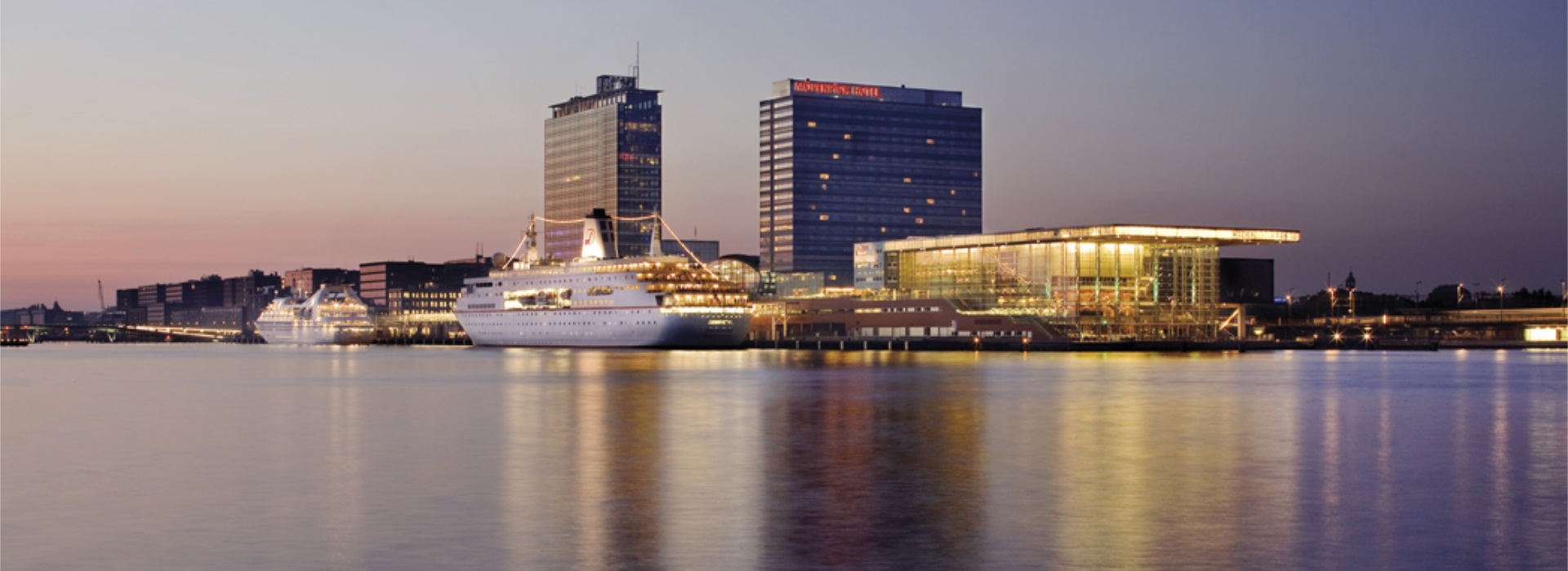 The hotel is situated on the ‘IJ’ between the Passengers Terminal and the “Muziekgebouw”.